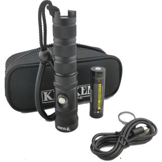 Alimentado por una batería de litio 21700 con carga directa USB-C que brinda 1800 lúmenes de potencia de luz con 15º de apertura.